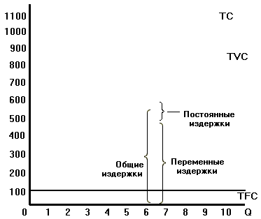 Рисунок 3.2 Общие издержки как сумма постоянных