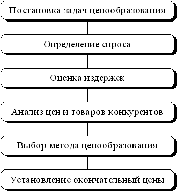 Таким образом, ценообразование существенно отличается на различных типах рынков. Фирмам необходимо иметь методику расчета исходных цен на свои товары. Ф. Котлер в работе «Основы маркетинга» [2] рассматривает методику расчета цен, состоящую из следующих этапов:
