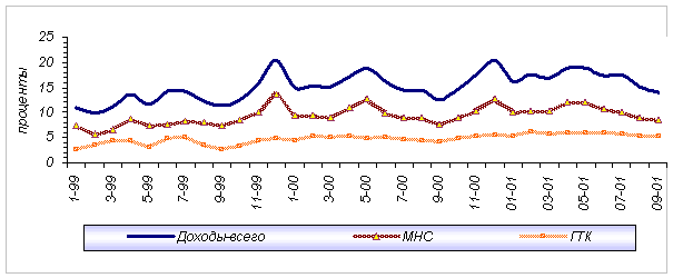 федеральный бюджет доходов в 1999-2001 гг. (в процентах к ВВП)