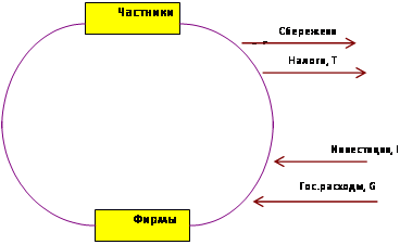 В глобальной картине циркуляционного потока налоги и государственные расходы можно изобразить, введя дополнительный отток величиной в Т долларов и дополнительный приток величиной G долларов, как это показано на рис.3.