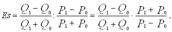 где Q0 и Q1 -предложение до и после изменения цены; Р0 и Р1 - цены до и после изменения; «s» в индексе означает эластичность предложения.